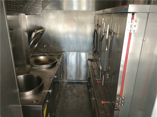 廂體外蒙材料可以采用玻璃鋼板或者彩鋼板,內(nèi)飾材料采用不銹鋼板或者玻璃鋼板或者彩鋼板,廂體兩側(cè)采用上翻結(jié)構(gòu)??梢栽O(shè)置單獨的隔離艙用于放置燃氣灶和儲物柜。車廂內(nèi)部可以根據(jù)實際使用情況配備:廚房專用燃氣灶,水池,冰箱,電磁爐,開水器,水箱等,也可以根據(jù)客戶要求配置,采用外接電源供電。 流動餐飲車采用二類汽車底盤改裝,車廂經(jīng)過特殊材料制作而成的專用汽車