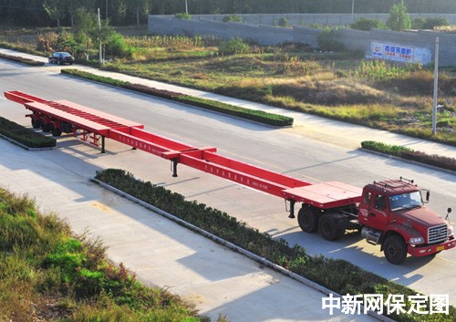 中新河北網(wǎng)保定10月18日電 保定曲陽縣委宣傳部18日透露,河北曲陽華運順通專用汽車制造有限公司開發(fā)的大型“風(fēng)電葉片運輸車”在曲陽下線。此車的下線,成為中國風(fēng)電葉片運輸車行業(yè)中的典范。
