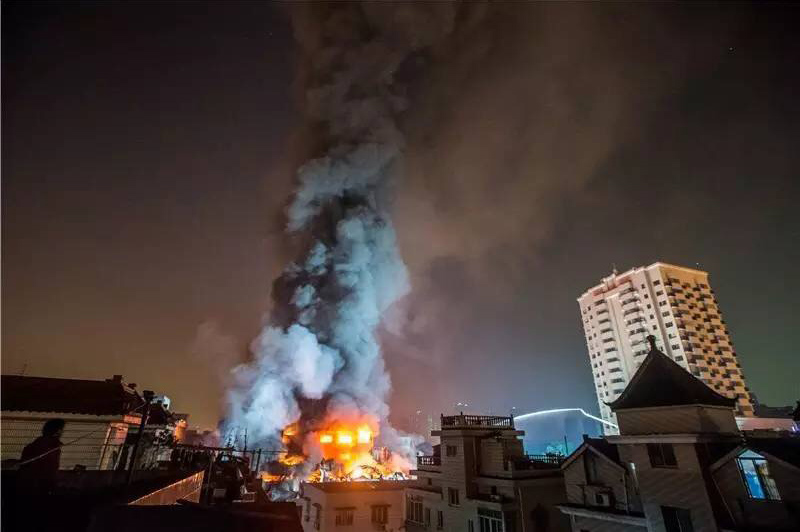 火災(zāi)發(fā)生在東門(mén)大廈北面的一個(gè)城中村,火勢(shì)極大,艮山西路停了40多輛消防車(chē),僅留一個(gè)車(chē)道供東向西車(chē)附近的艮山西路和新塘路出現(xiàn)大面積擁堵。圖為火勢(shì)蔓延到周邊倉(cāng)庫(kù),消防員在現(xiàn)場(chǎng)奮力撲救。