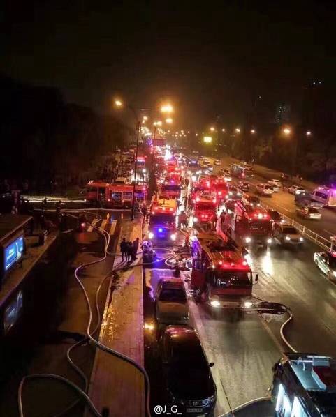 圖為數(shù)十輛消防車(chē)趕來(lái)救援。