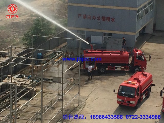 多功能消防車又稱多功能灑水車,它有灑水車的前沖、后灑、側(cè)噴和工作平臺(tái),它的前沖寬度能達(dá)到14米,側(cè)噴水炮射程可以達(dá)到24米。