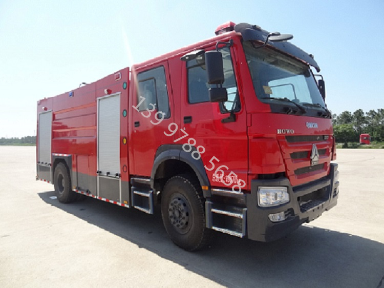 豪沃T5G8噸泡沫消防車圖片_高品質_哪里賣,是一種設計制造成適宜消防隊員乘用、裝備各類消防器材..