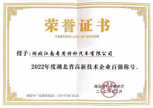 湖北江南獲得由湖北省科學(xué)技術(shù)廳、湖北省財(cái)政廳、國(guó)家稅務(wù)總局湖北省稅務(wù)局機(jī)關(guān)批準(zhǔn)。由湖北省科學(xué)技術(shù)廳頒發(fā)的“2022年度湖北省高新技術(shù)企業(yè)百?gòu)?qiáng)稱號(hào)”榮譽(yù)證